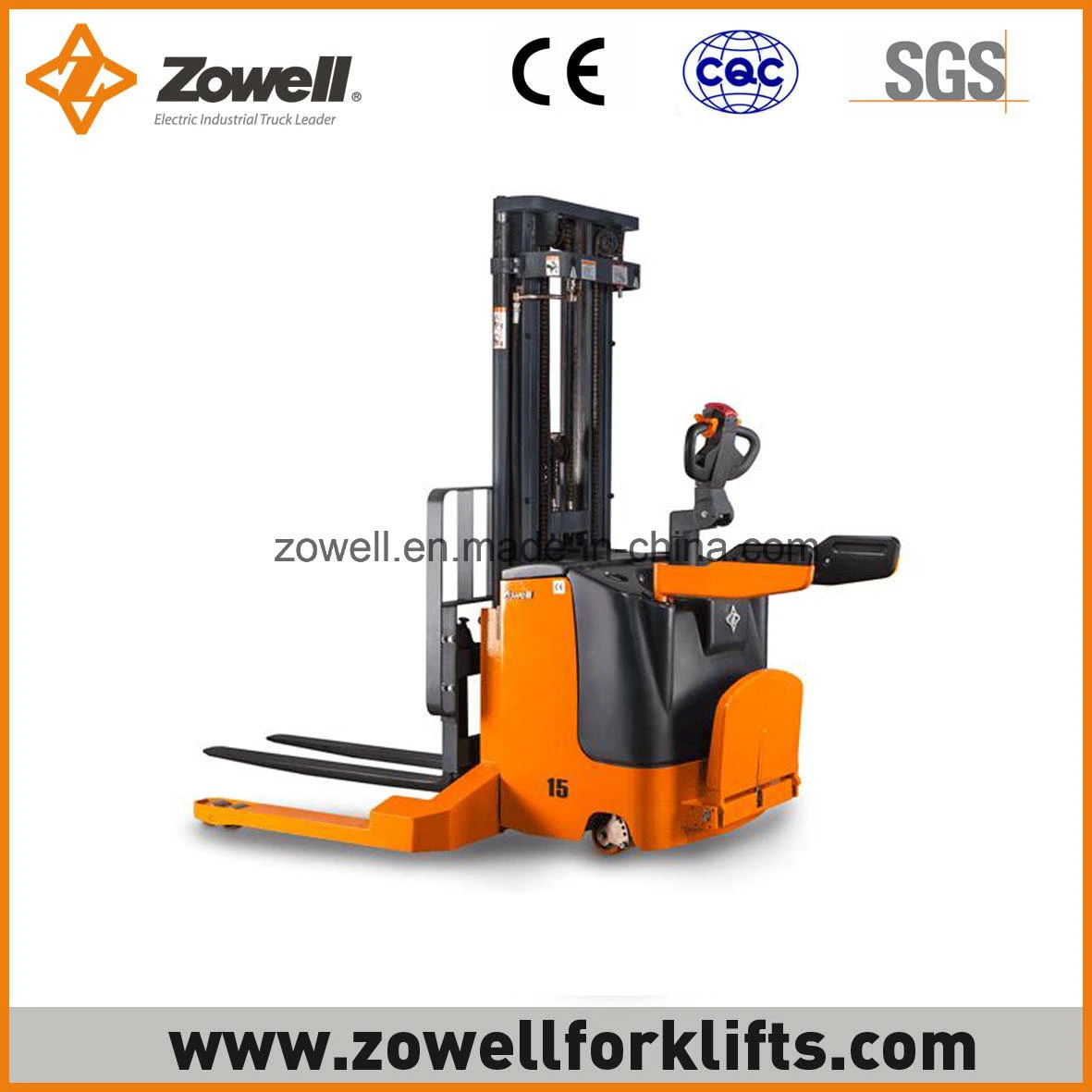 Model: XEKLoading capacity: 1000kg, 1500kg, 2000kgLifting height: 1600mm to 5500mmBattery side extraction: The side gate and the battery cover are openable. Battery can be removed from the side, making it very convenient to replace and maintain batteriesEmergency reversing device in the handle provides improved operating safety.